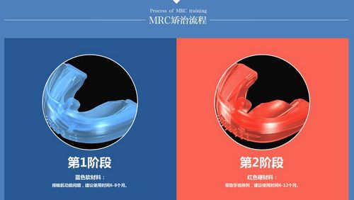 MRC矫治器可分为:训练器系列、阻截性系列、正畸用矫治系列、肌功能矫治性托槽系列、TMJ系列。MRC系列矫治器是由高弹性、高稳定性的材料制成,无毒副作用。通过计算机设计成通用型理想的牙弓轨迹,并设计有舌尖诱导装置、舌挡、唇珠、中性颌定位装置等功能结构。与传统矫治器相比,它具有体积较小,轻便实用,佩戴舒适等优点,且集多种矫治功能于一体,在一定程度上可以代替前庭盾、舌刺、保持器等。